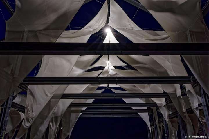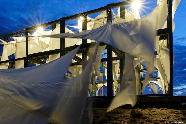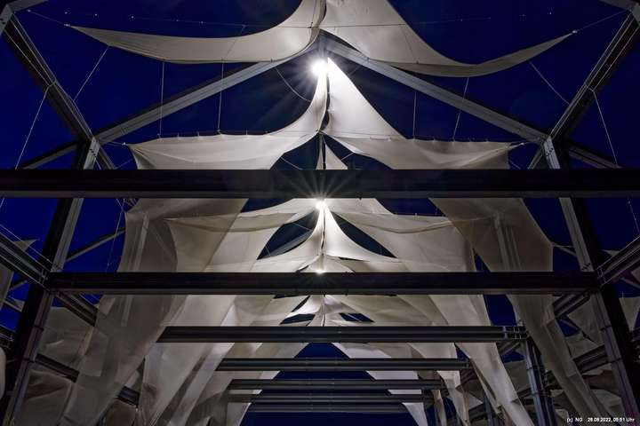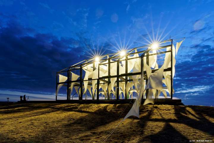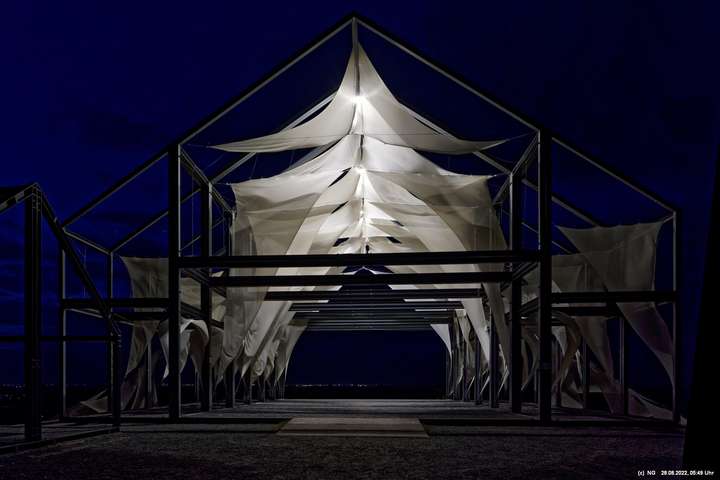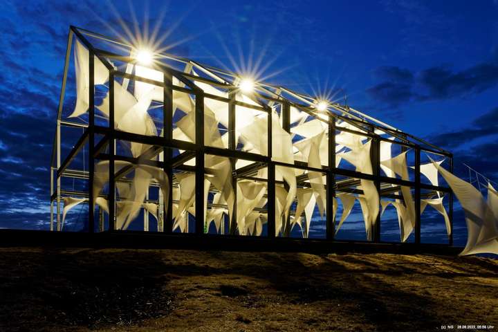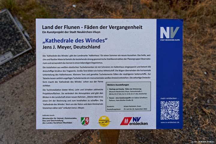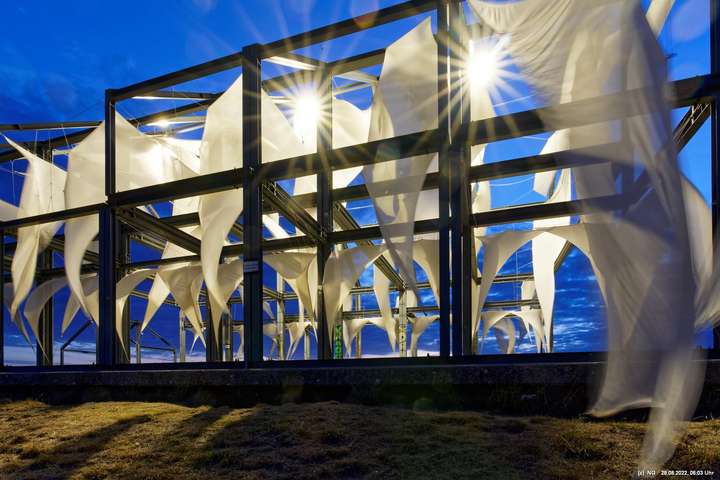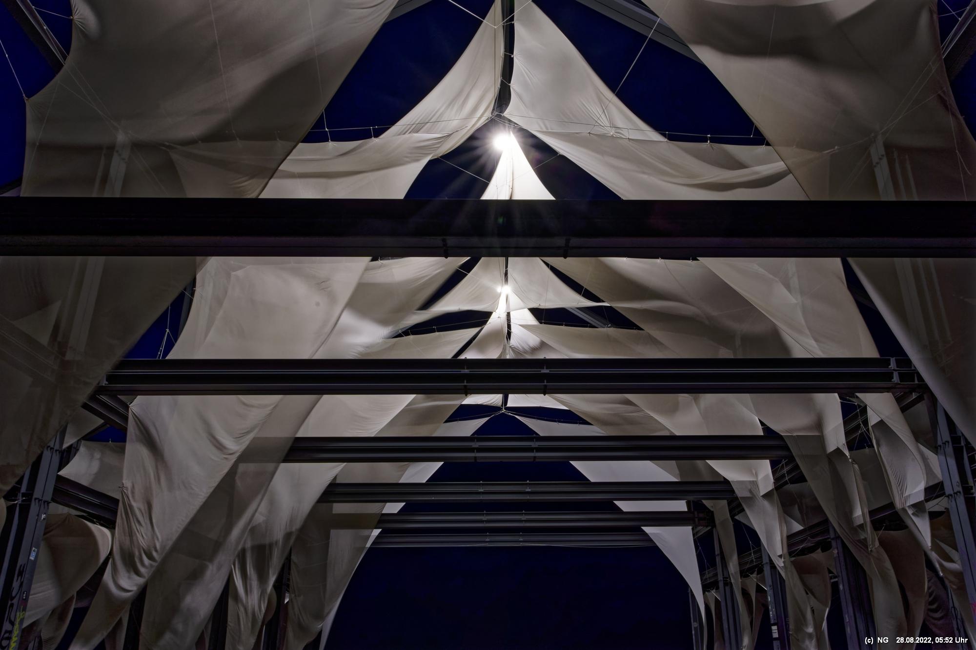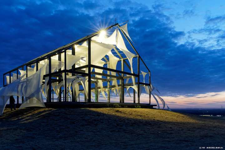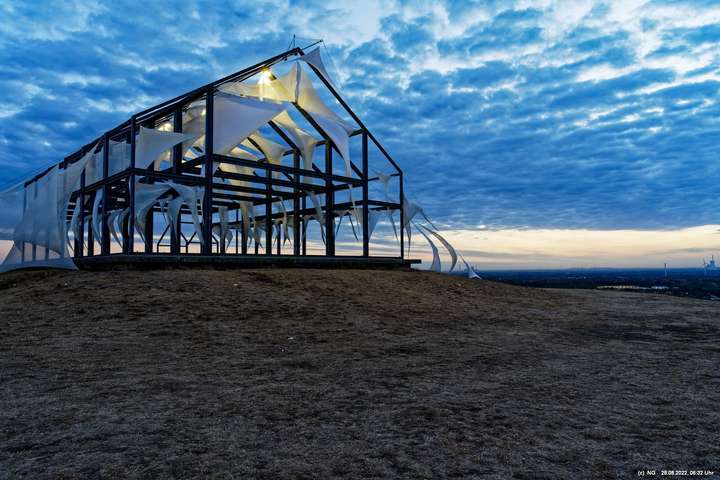 Oben auf der Halde gibt es die Tuchinstallation "Kathedrale des Windes" von Jens J. Meyer (Essen) zu sehen.