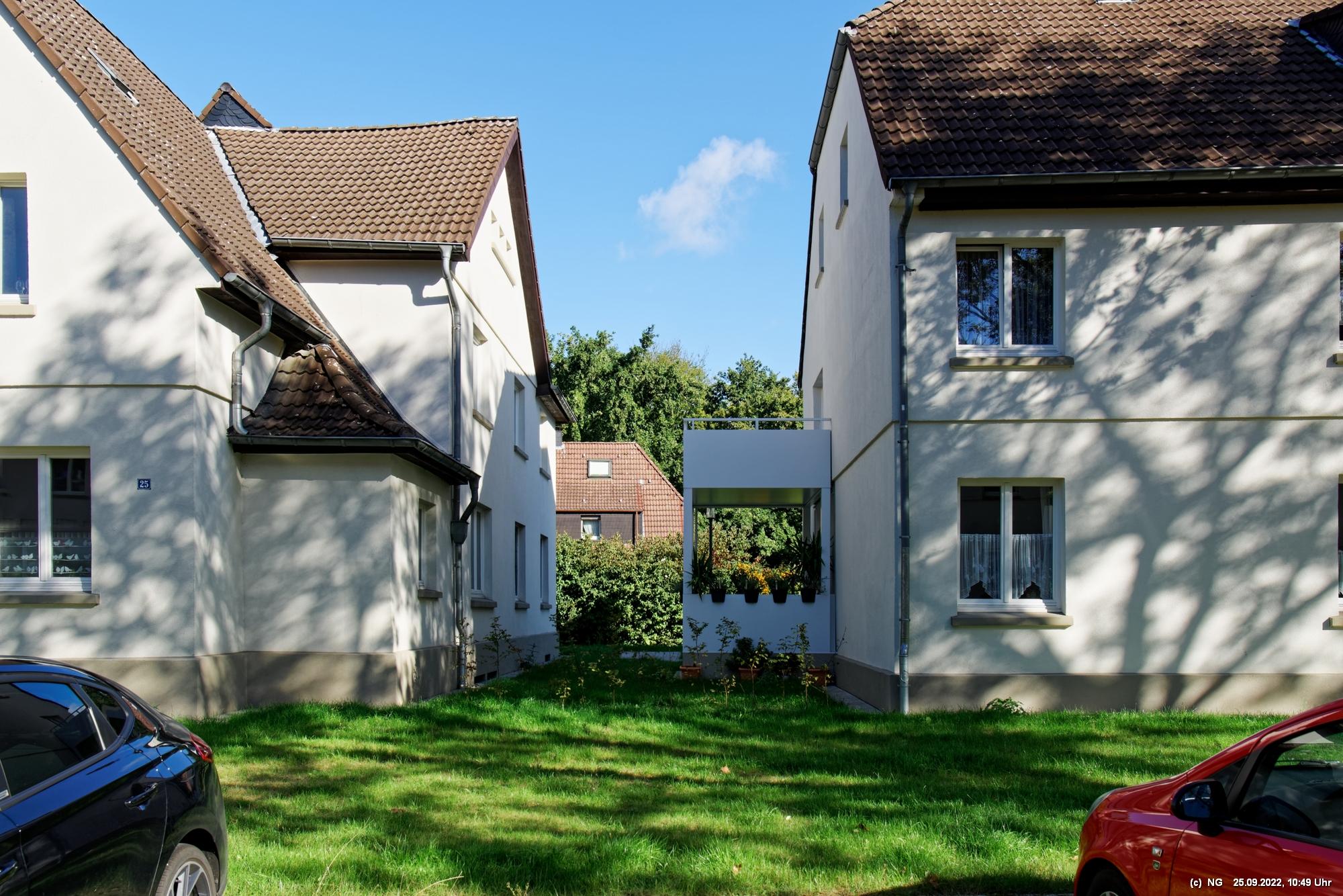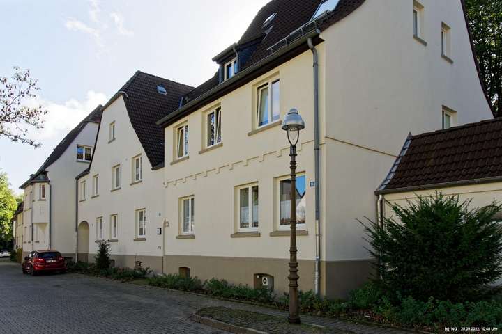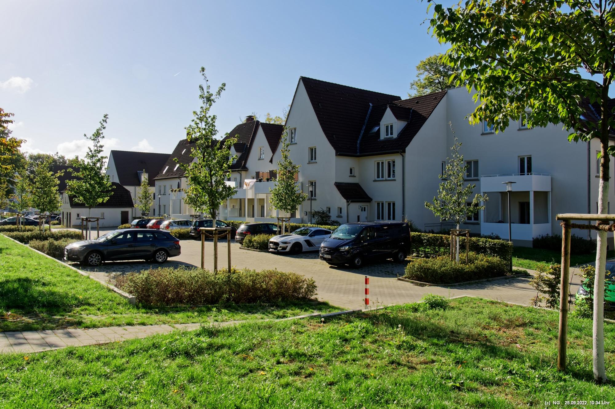 Für die Beschäftigen der Schachtanlage Graf Bismarck 3/5 entstand in den Jahren 1910-19143 nach einem Gesamtentwurf des Zechenbaumeisters Ernst Hachmann eine Gartenstadt-Siedlung.