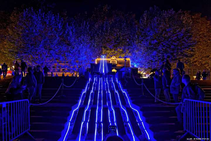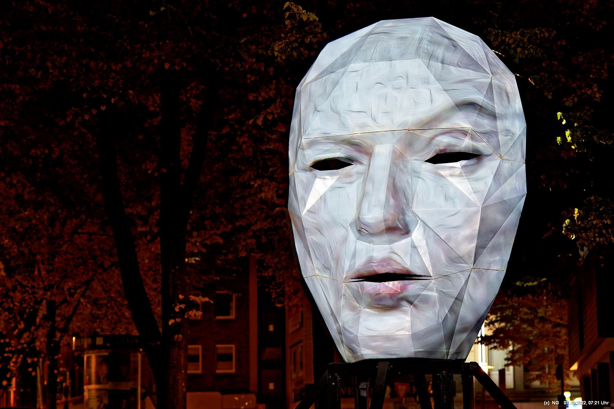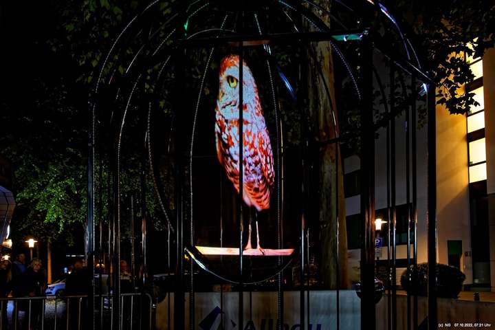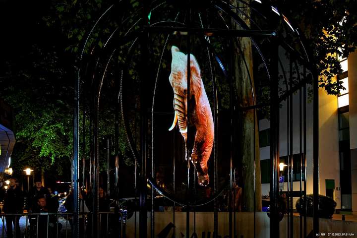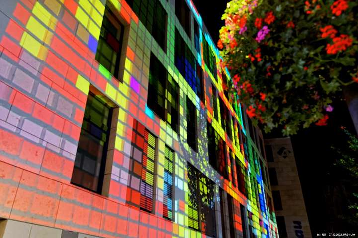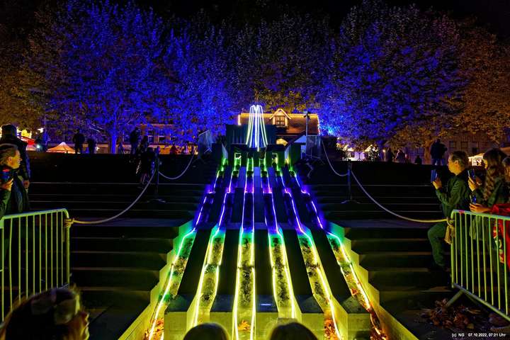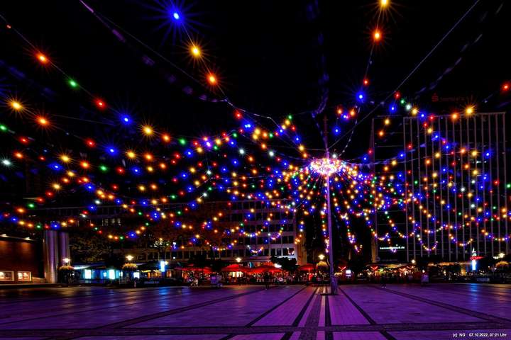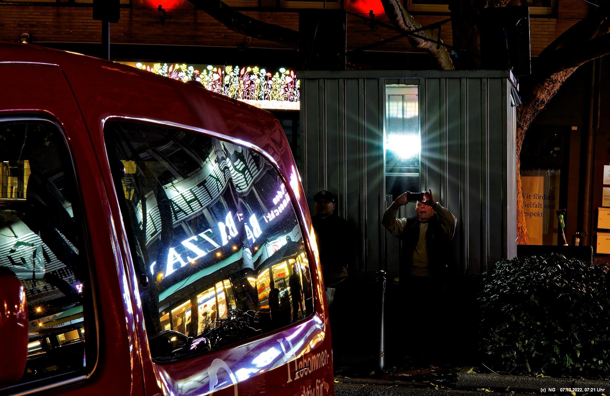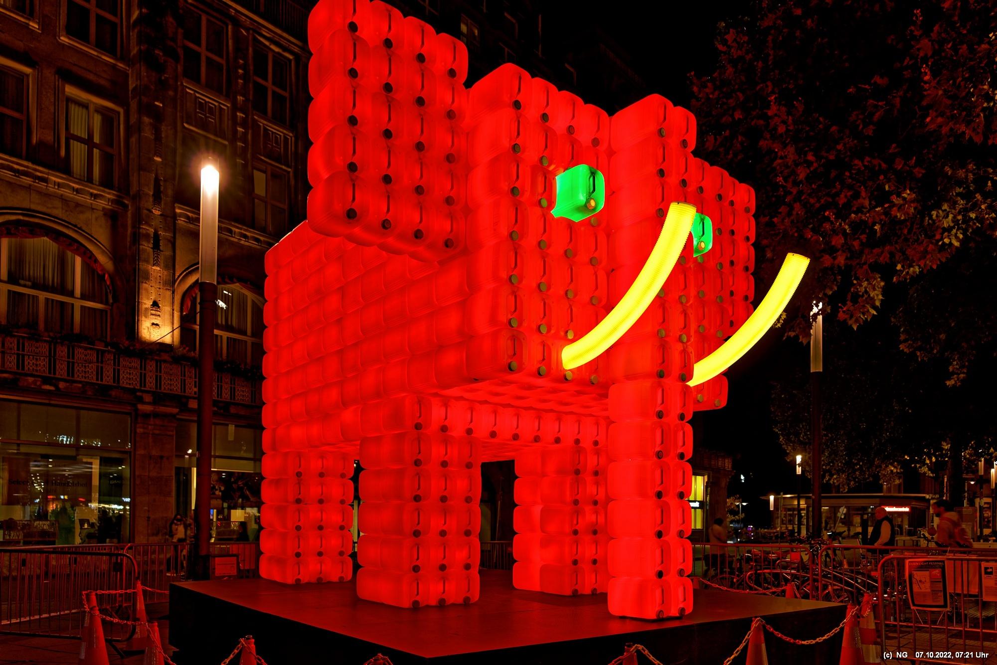 Es war aber doch einiges anders. Die Straßenbeleuchtung war fast vollständig aus und die Innenstadt war eigentlich nur von Buden, Schaufenstern und Werbung beleuchtet. Ein wenig reduziert war die Veranstaltung trotzdem, aber genau so sehenswert. Sie war wegen der besseren Übersichtlichkeit vornehmlich in Süd-Nord-Richtung orientiert. Sie leidet aber immer noch an der Streuung im gesamten Innenstadtbereich, so dass ein roter Faden nicht erkennbar ist.