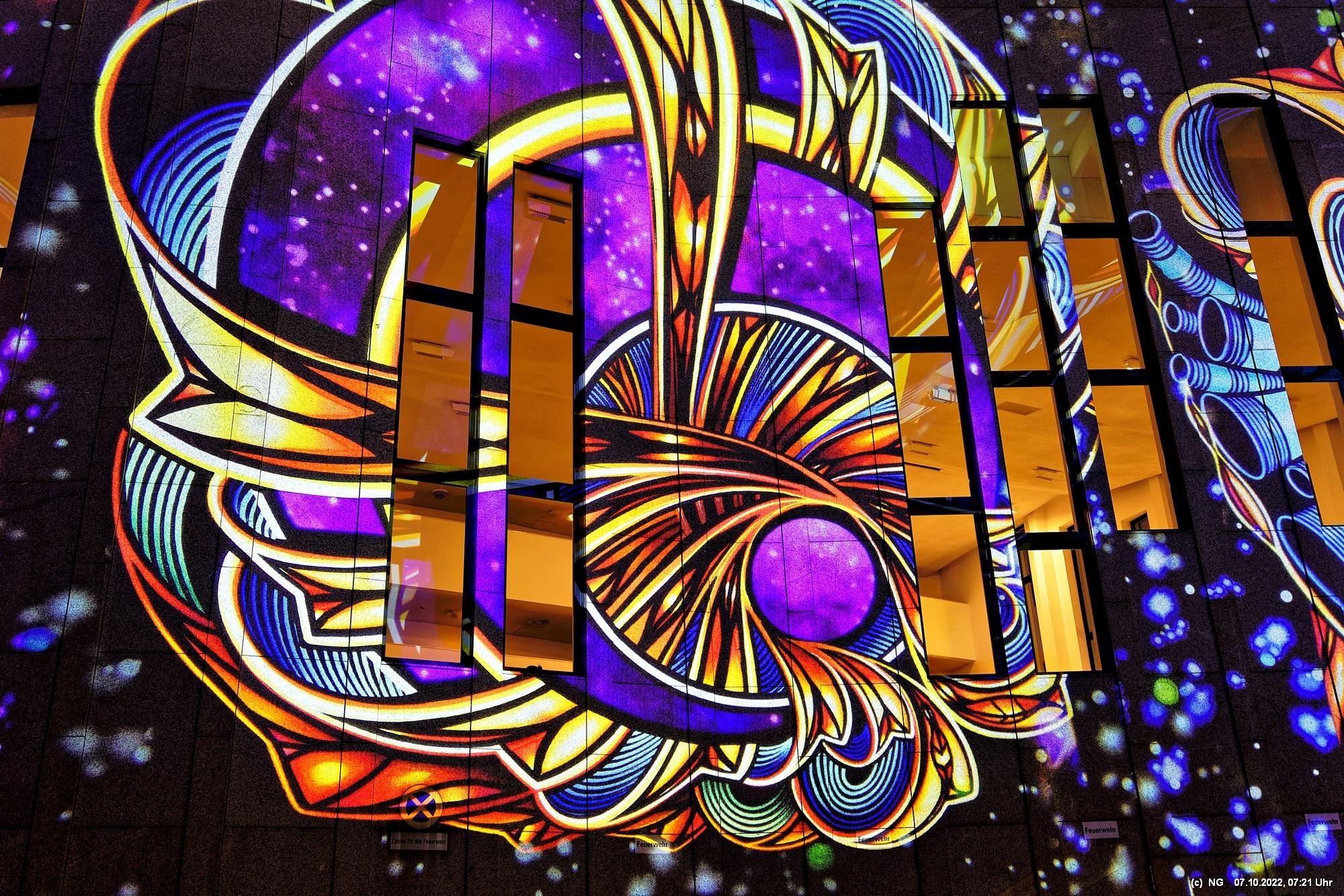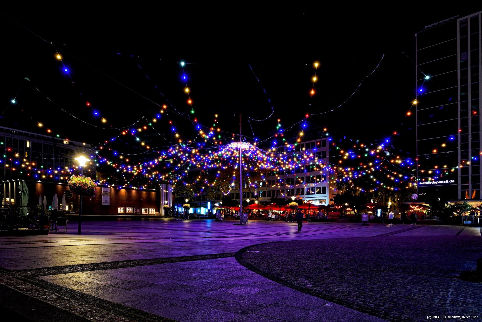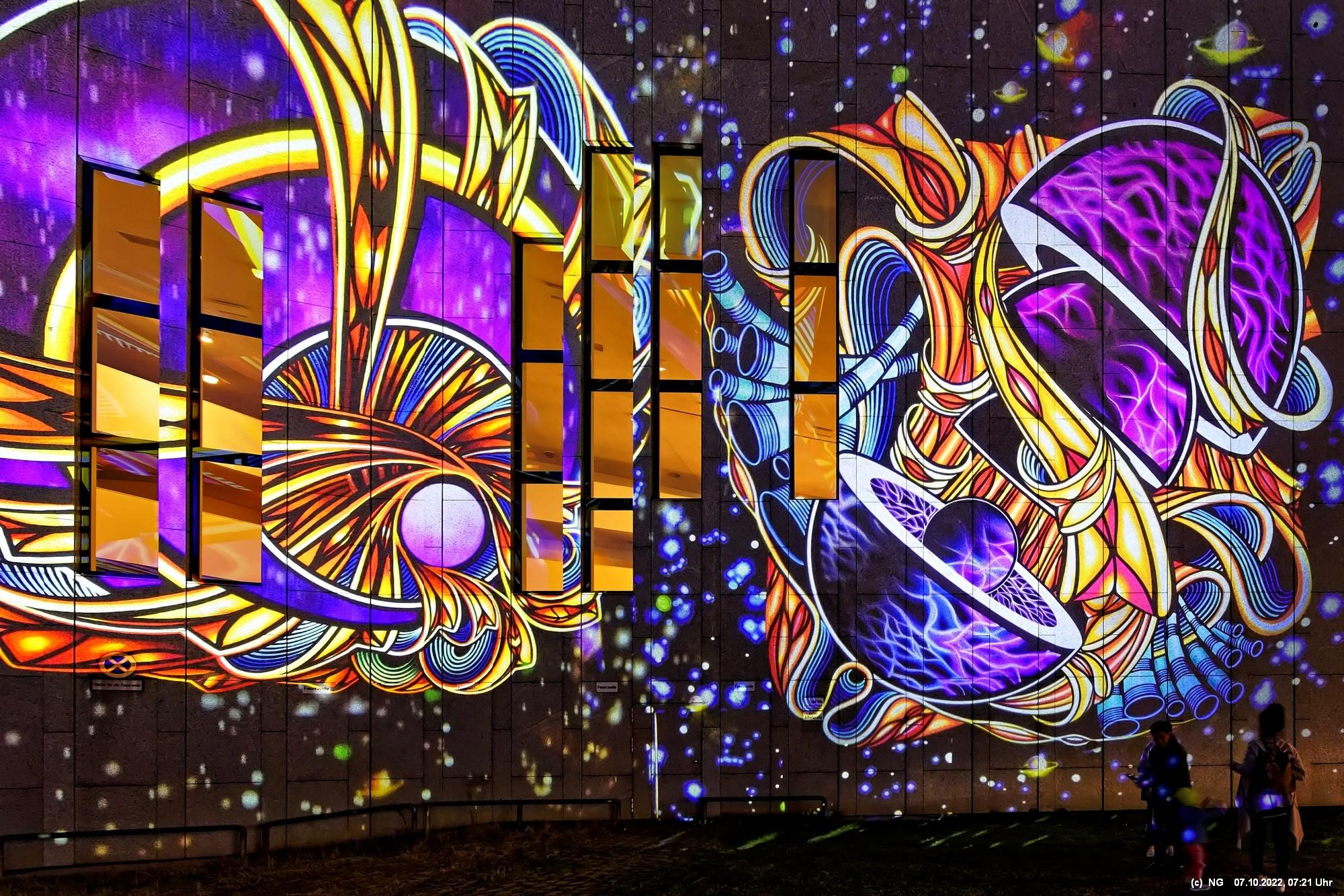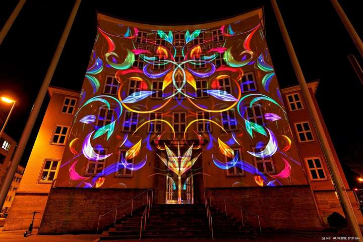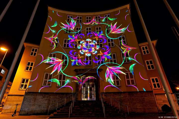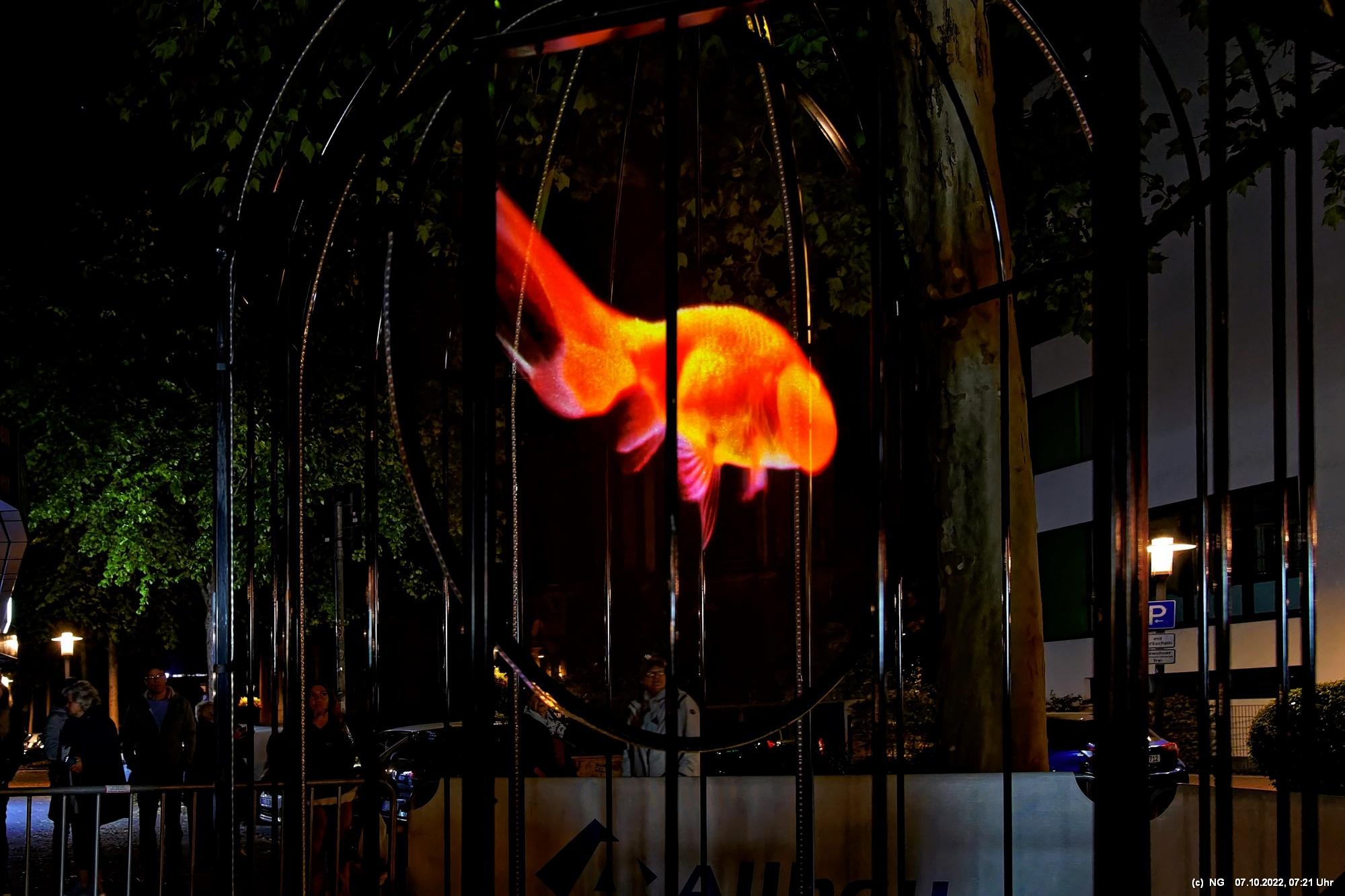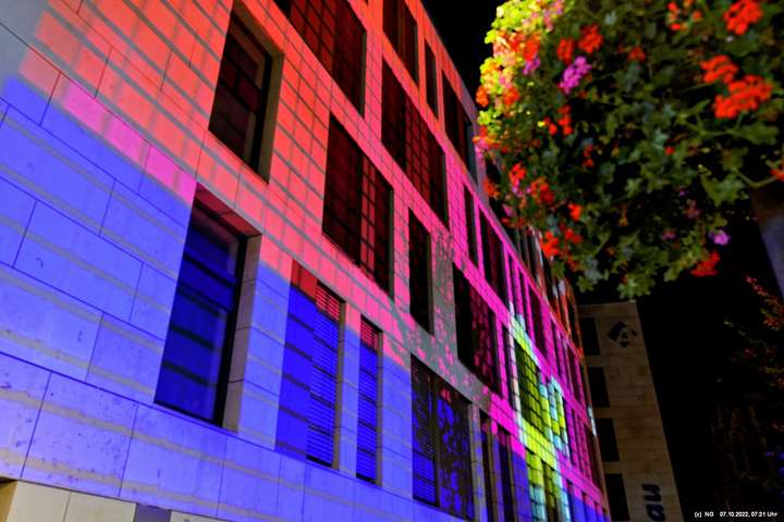 Es war aber doch einiges anders. Die Straßenbeleuchtung war fast vollständig aus und die Innenstadt war eigentlich nur von Buden, Schaufenstern und Werbung beleuchtet. Ein wenig reduziert war die Veranstaltung trotzdem, aber genau so sehenswert. Sie war wegen der besseren Übersichtlichkeit vornehmlich in Süd-Nord-Richtung orientiert. Sie leidet aber immer noch an der Streuung im gesamten Innenstadtbereich, so dass ein roter Faden nicht erkennbar ist.