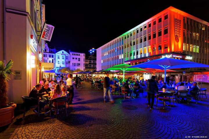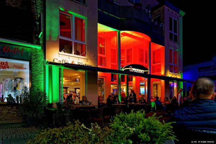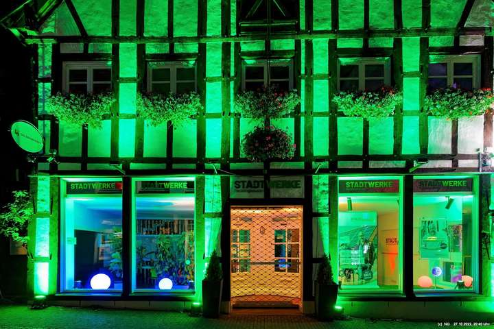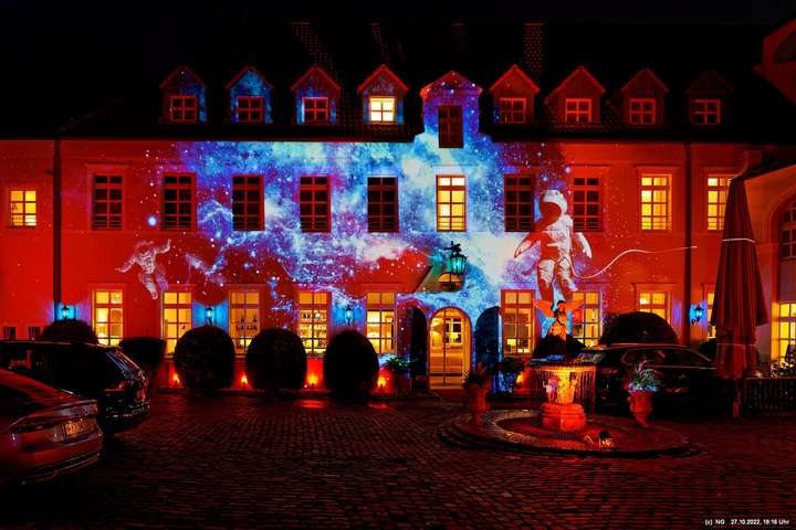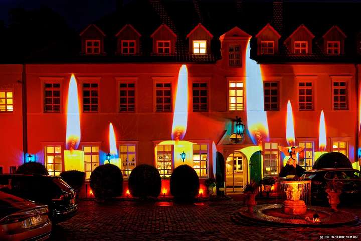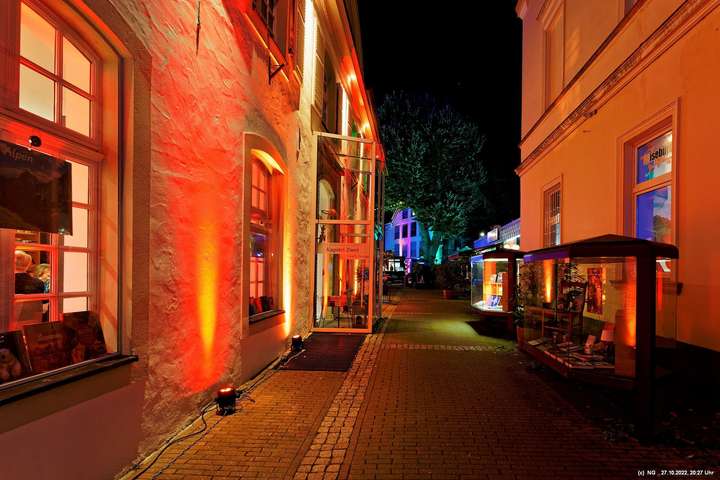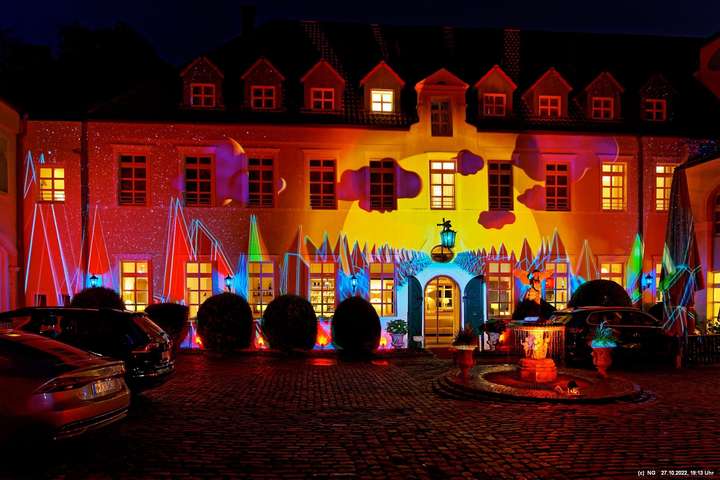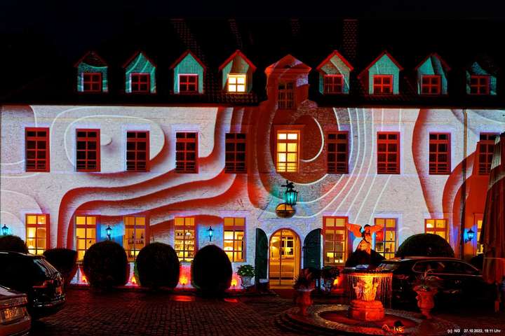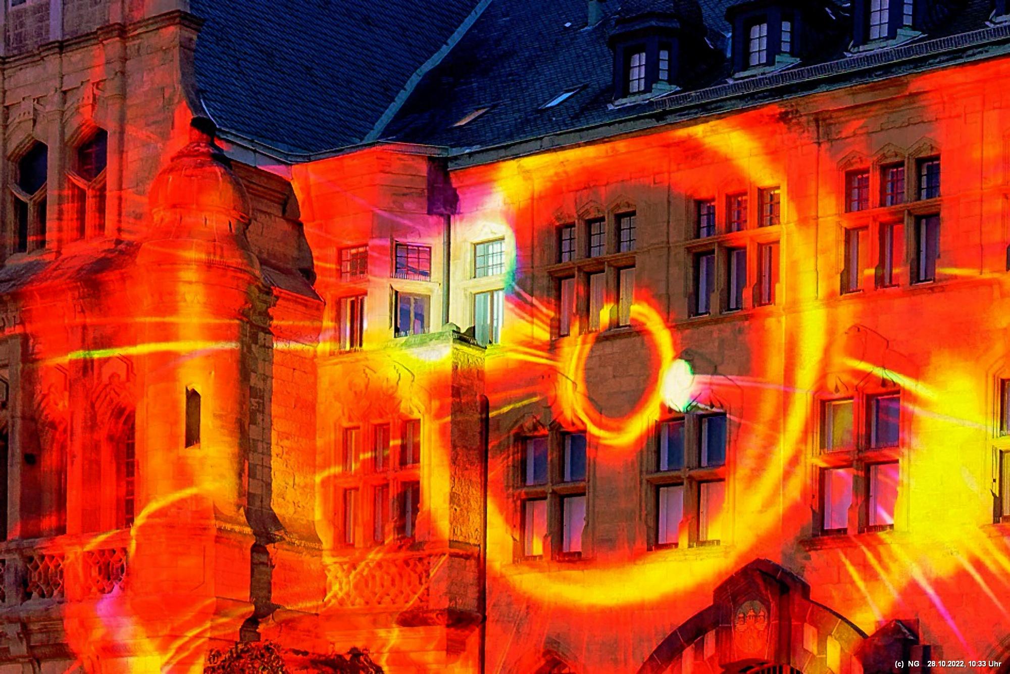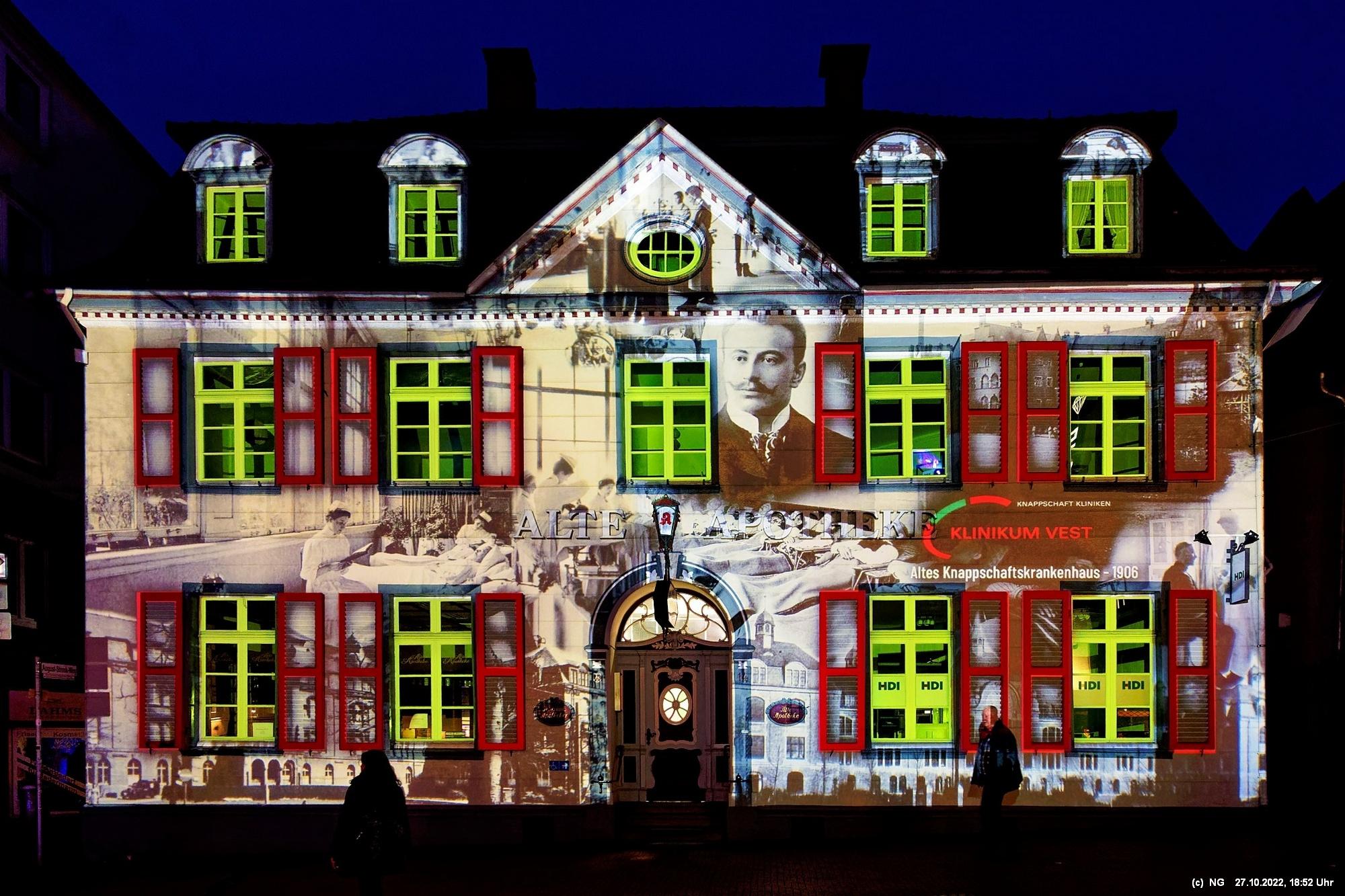 In diesem Herbst geht es um das Thema "Mobilität". „Recklinghausen leuchtet“ findet mitten in der Energiekrise statt. Wie kann das? Die Beleuchtung wird in diesem Jahr zwar früher ausgeschaltet, aber im Recklinghäuser Hafen hat man vorgesorgt. Dort wurde eine Solaranlage aufgebaut, die den Strom für das Event produziert. Damit ist die Veranstaltung nicht nur Klimaneutral, sondern es wird auch noch 50% mehr produziert, als in einem Jahr verbraucht wird. Also unbeschwert losgehen in die prächtige Stimmung der Altstadt. Wir haben lecker gegessen und mit rund 3,5 km nur einen kleinen Rundgang gemacht, also bei Weitem nicht alles gesehen.