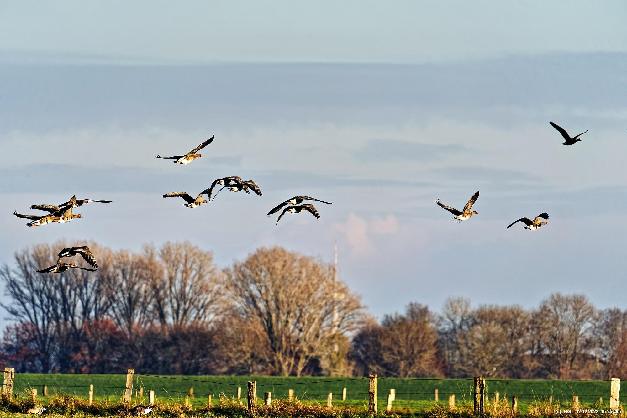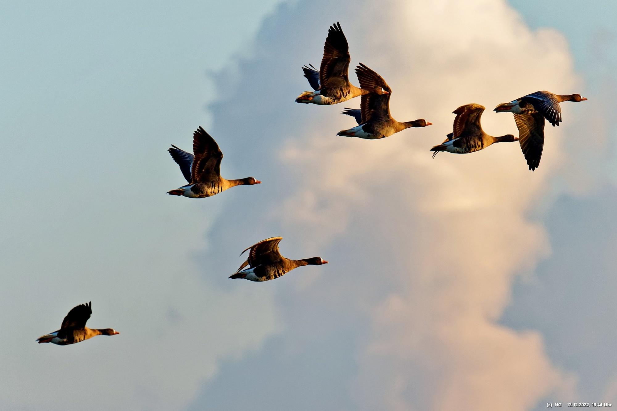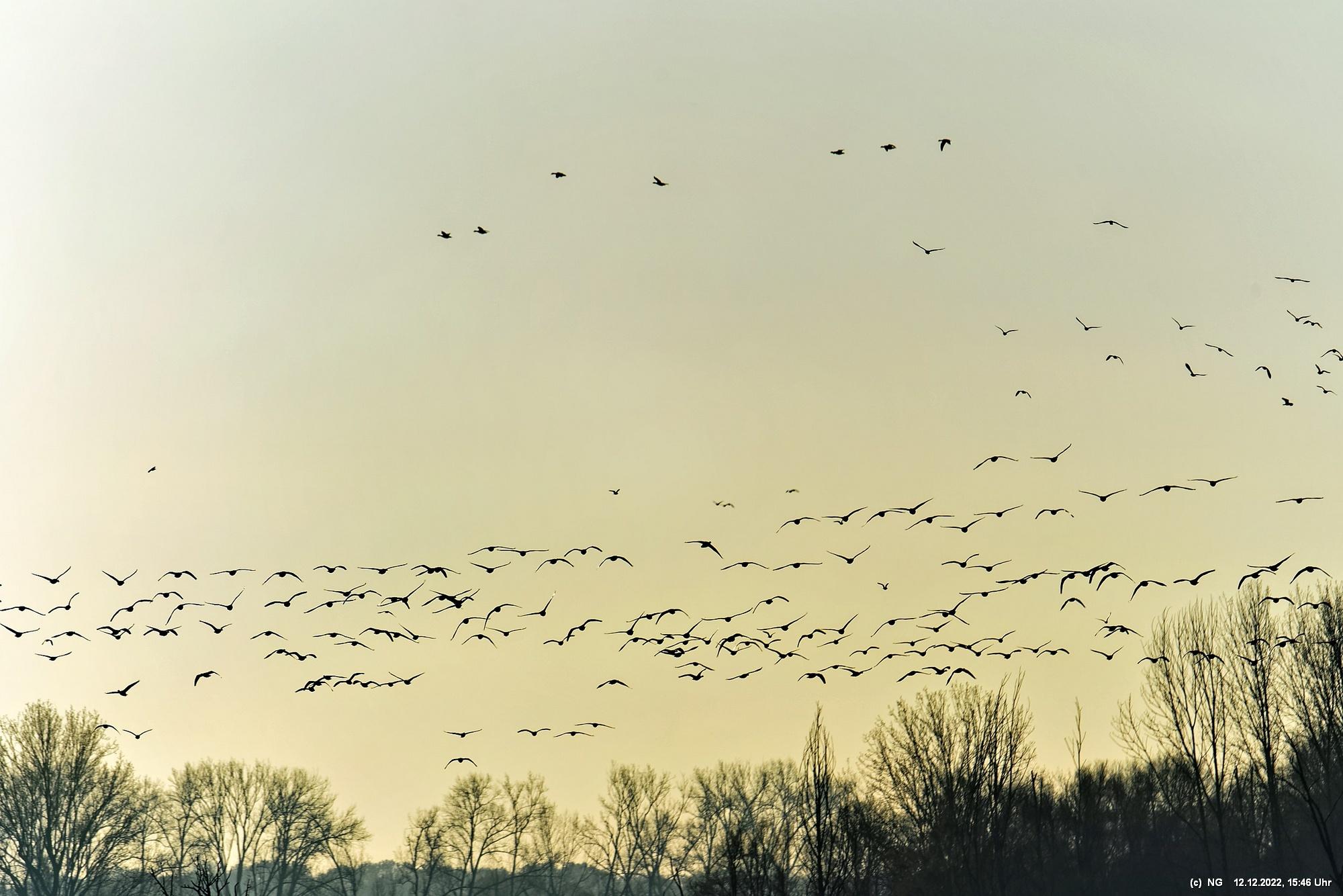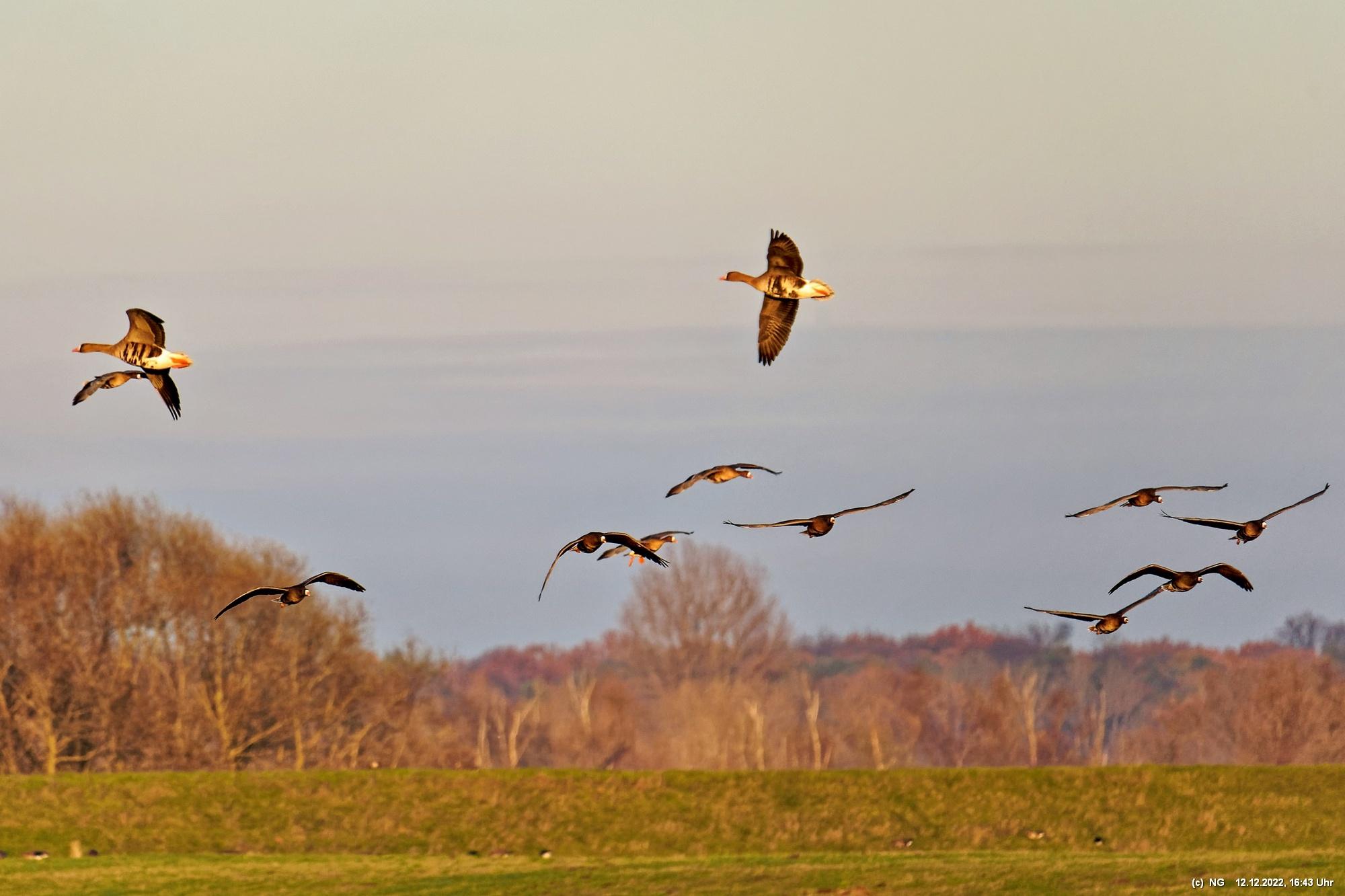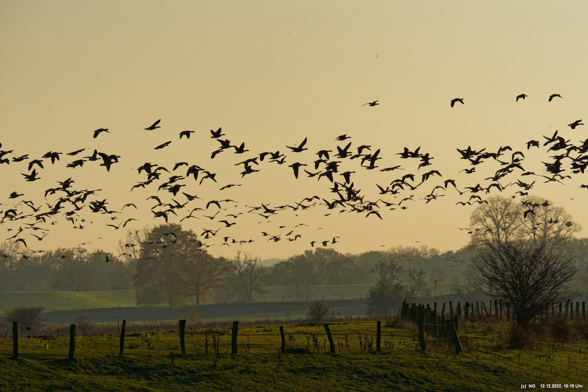 999 Wildgänse vor Sonnenuntergang Bislicher Insel, Xanten