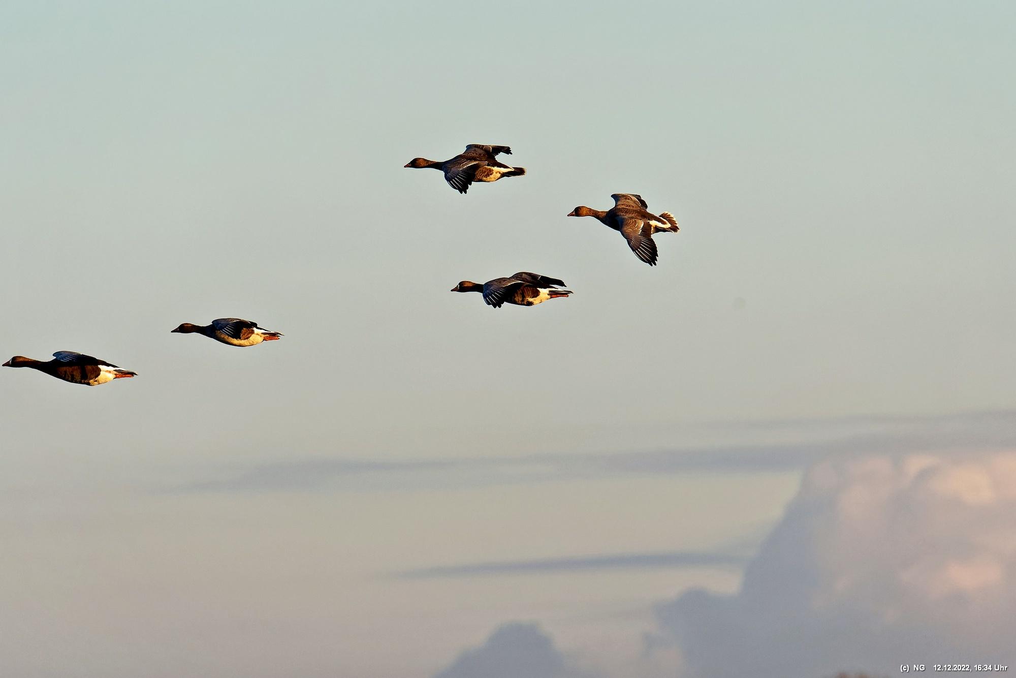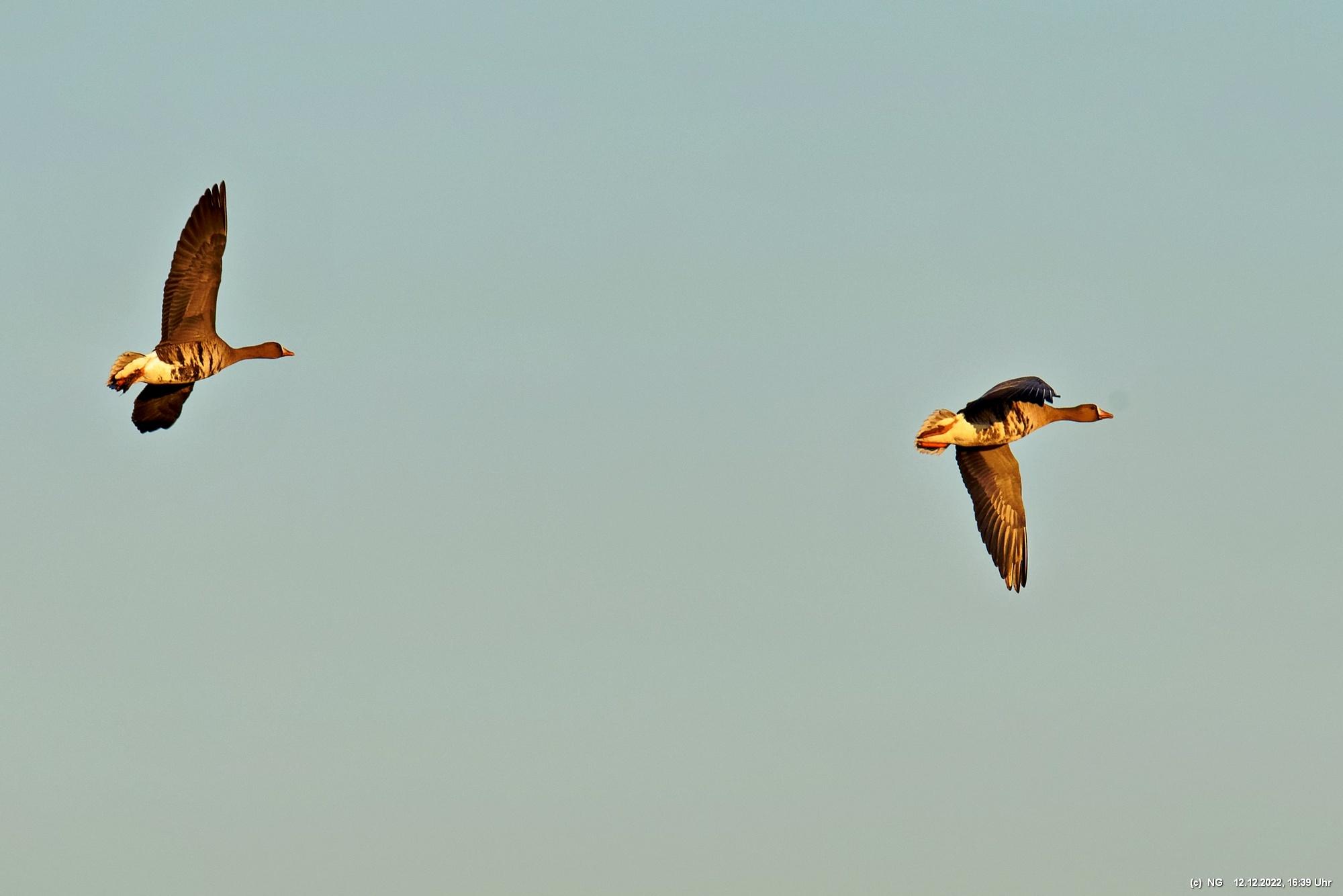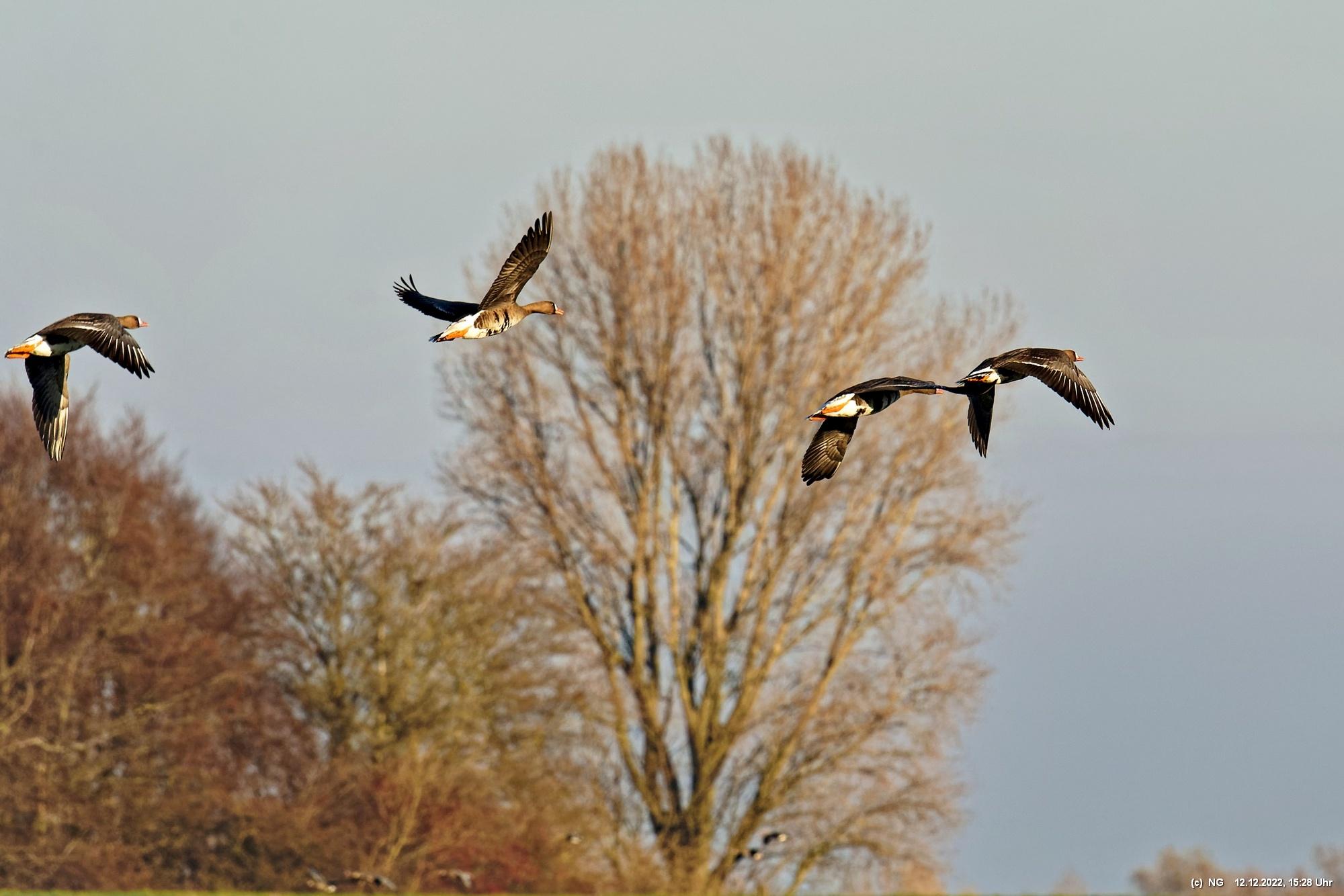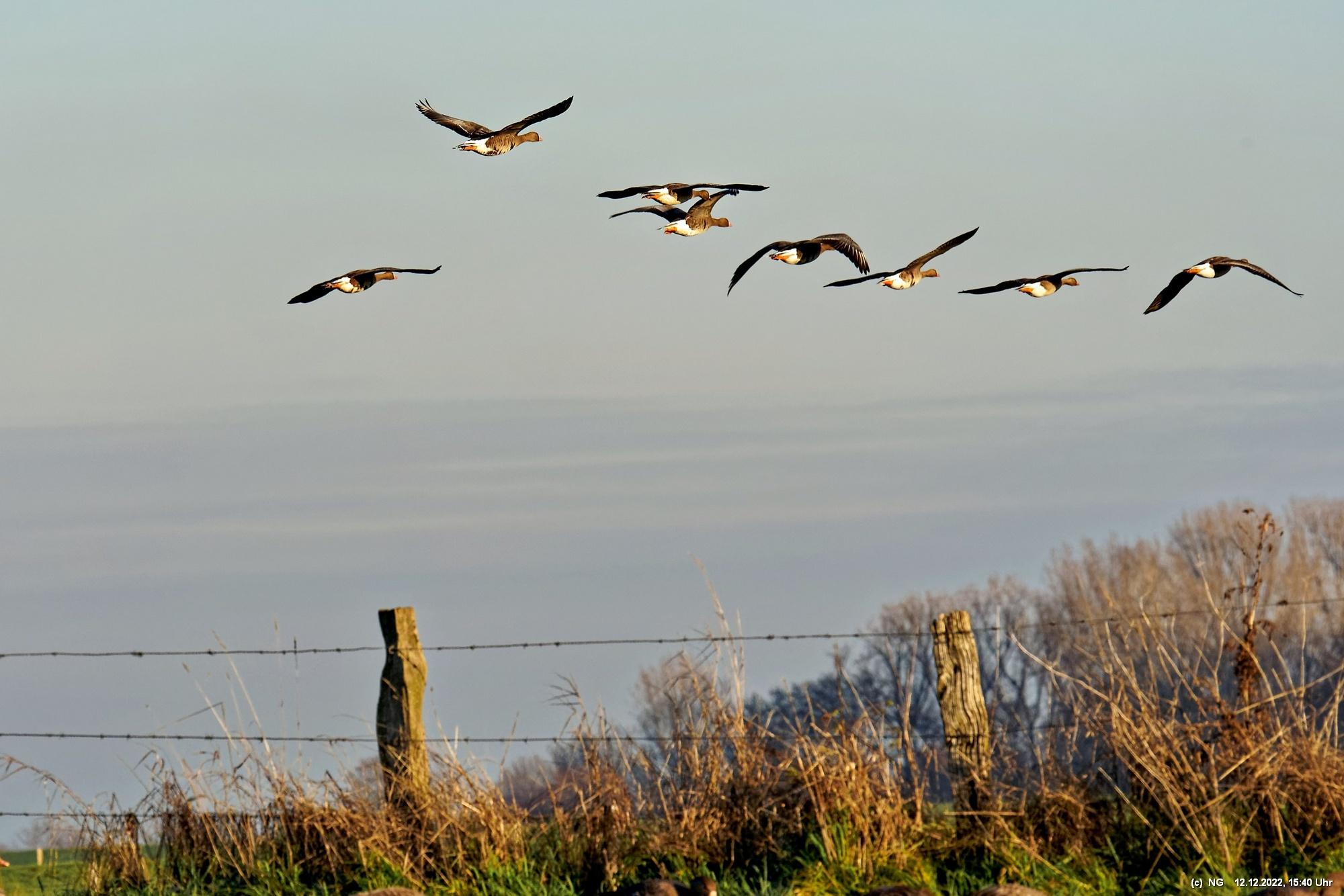 999 Wildgänse vor Sonnenuntergang Bislicher Insel, Xanten