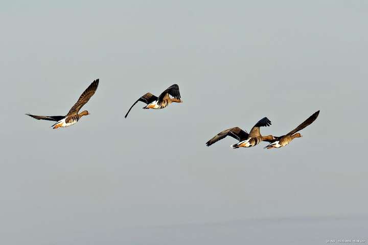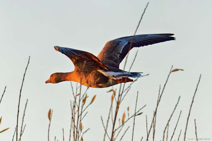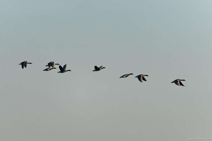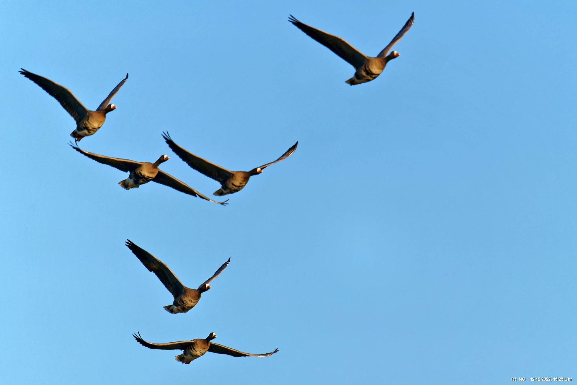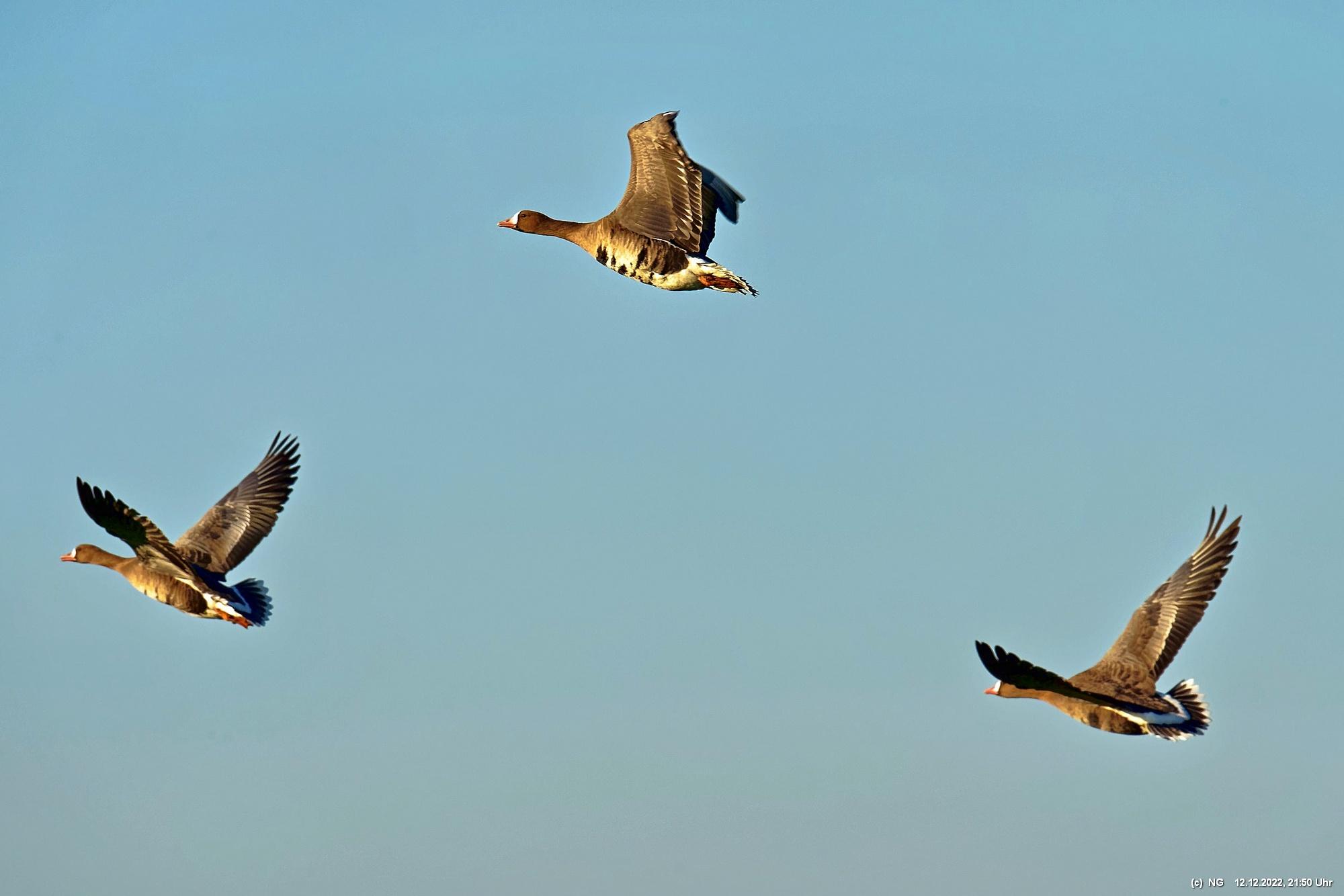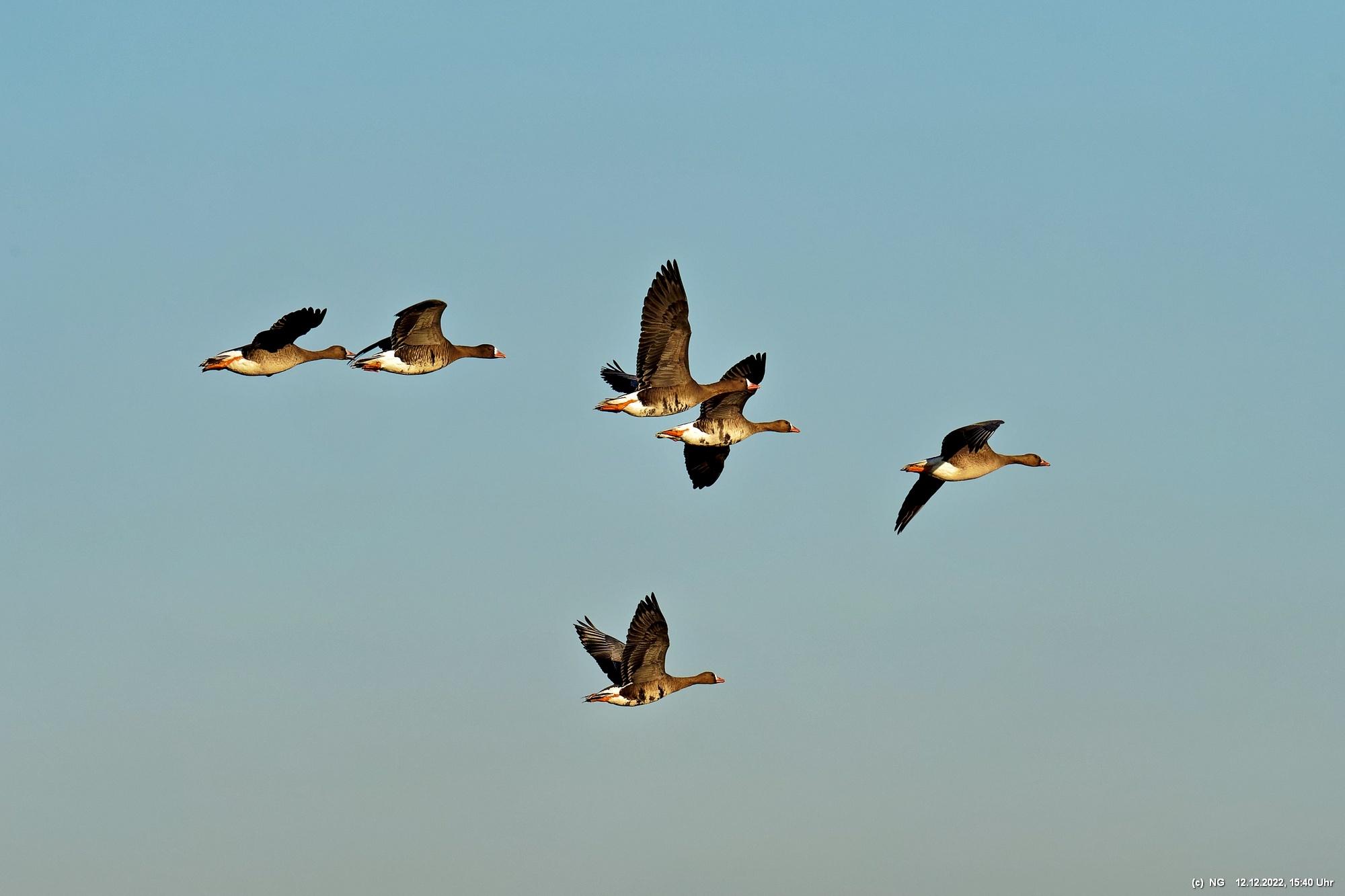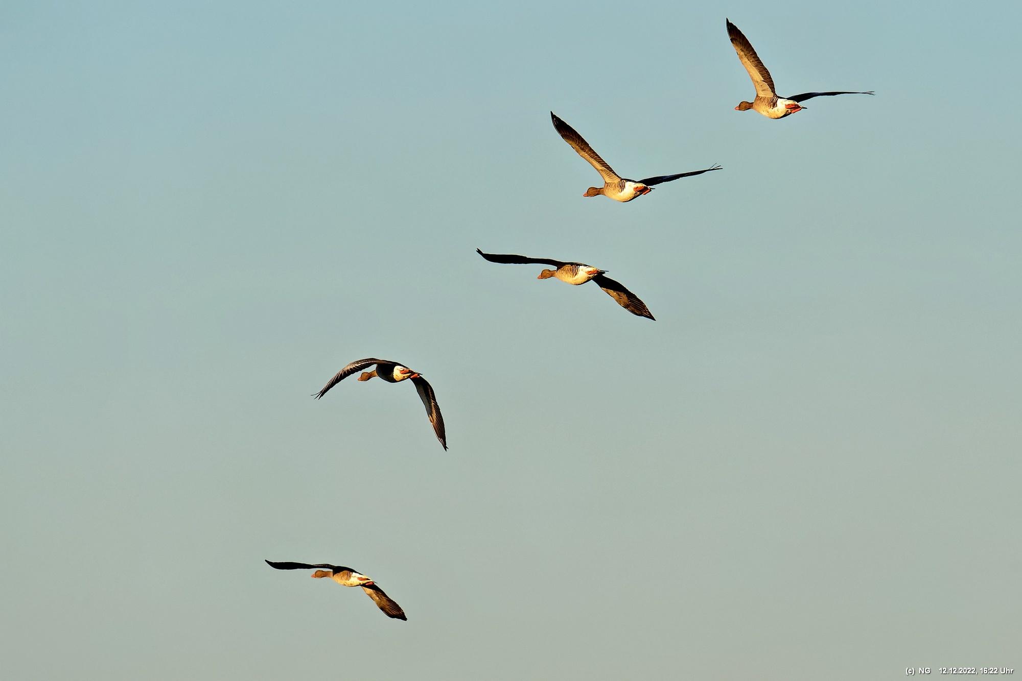 999 Wildgänse vor Sonnenuntergang Bislicher Insel, Xanten
