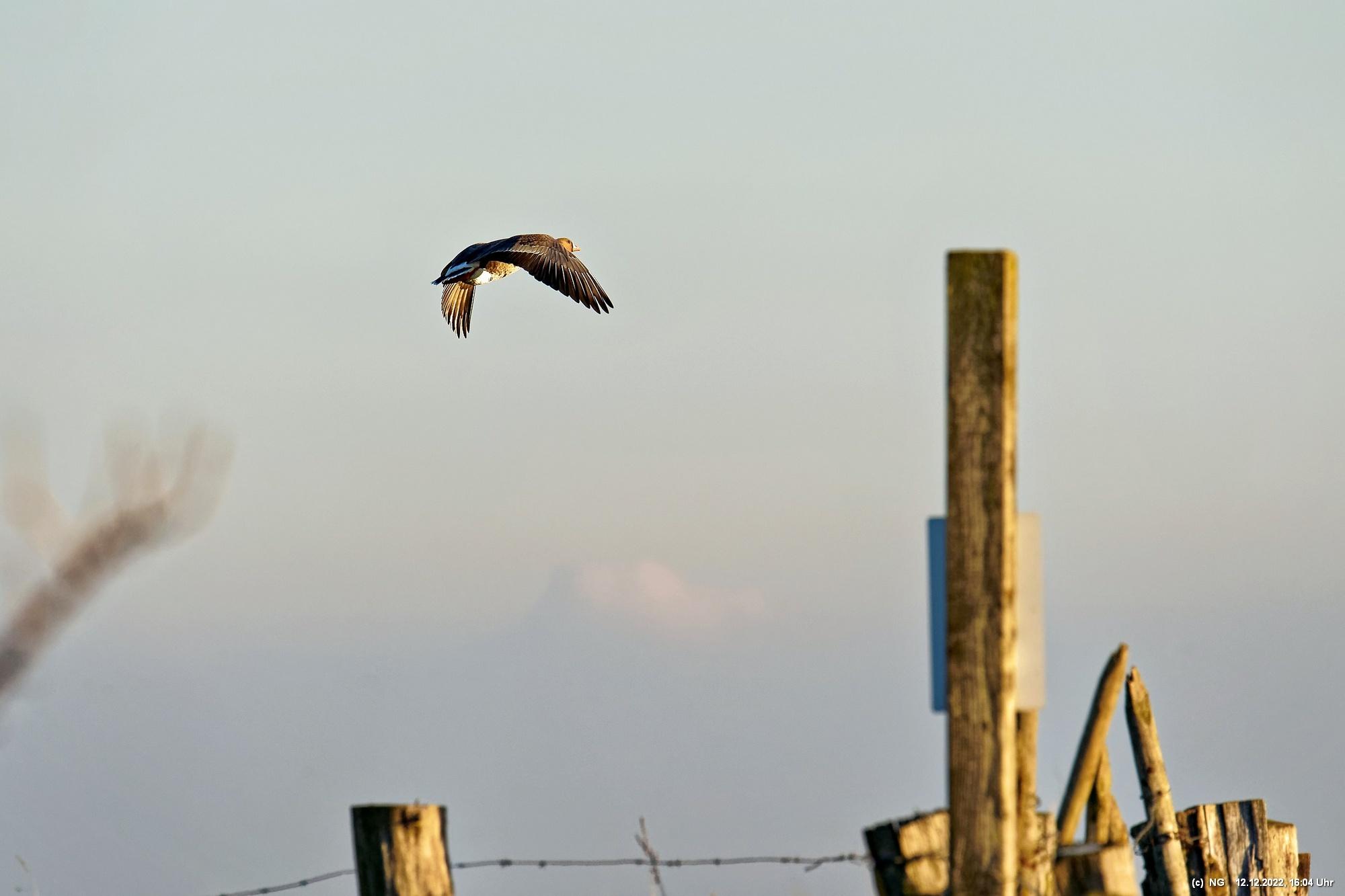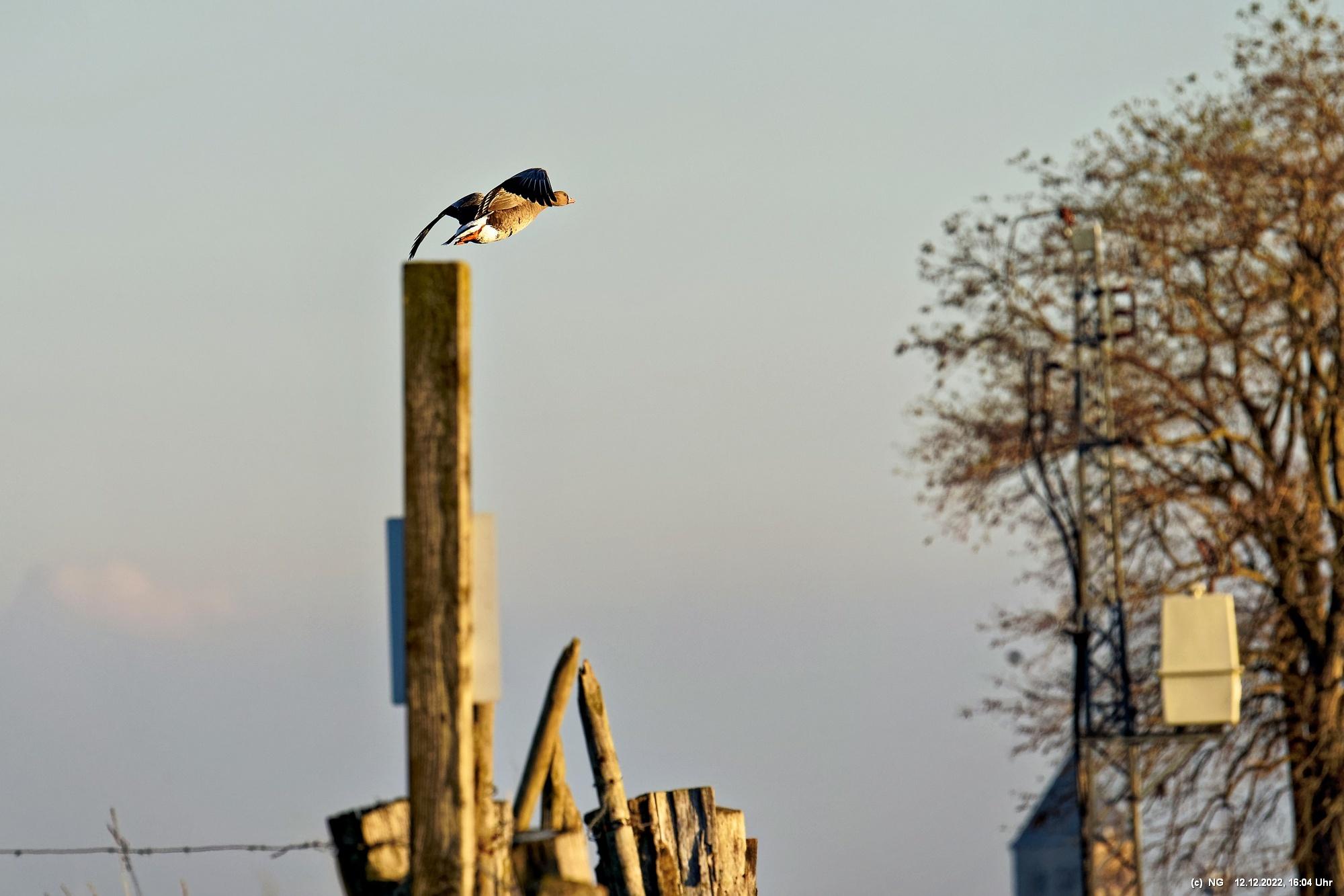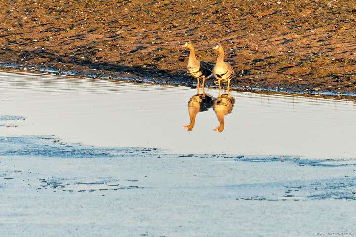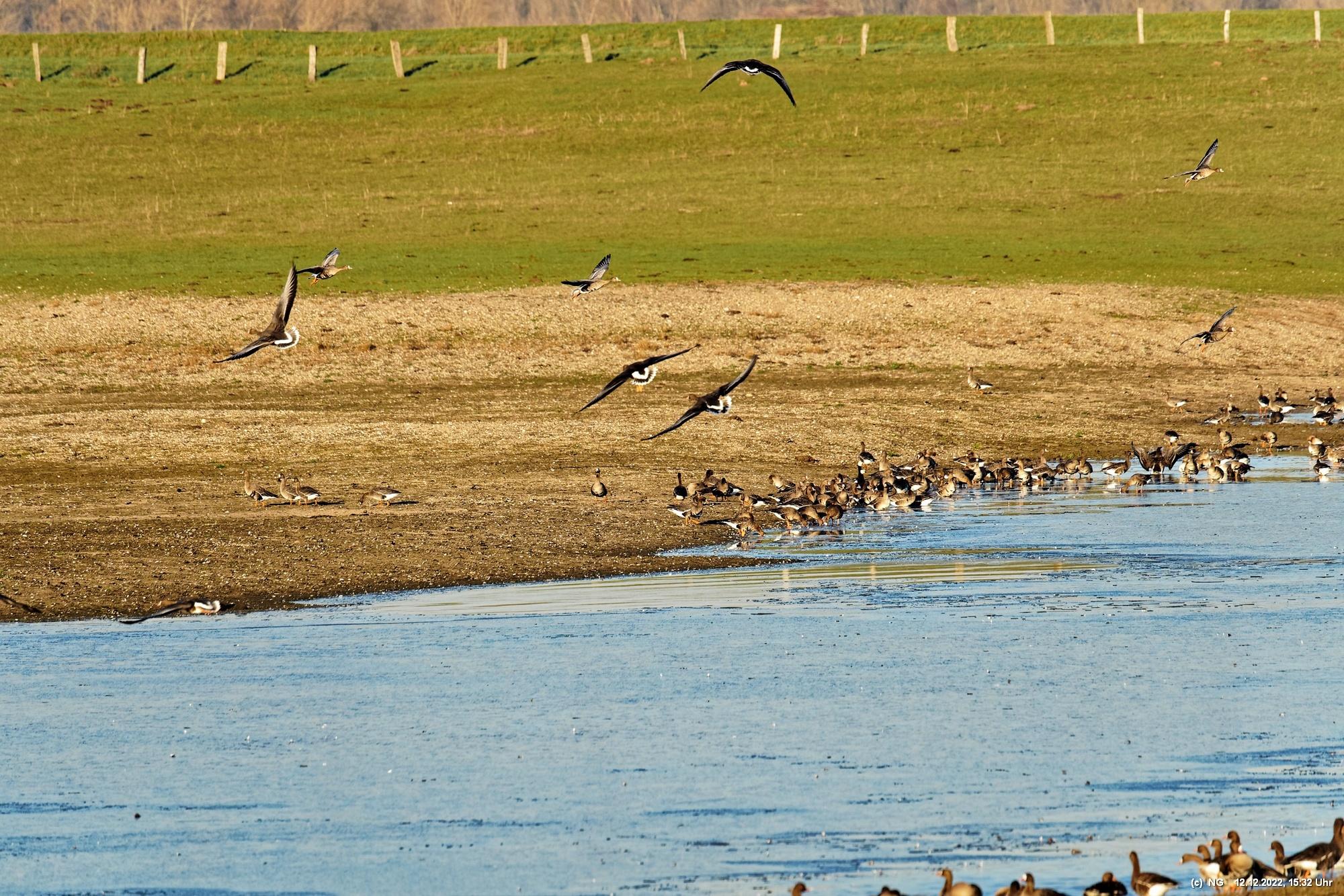 Wieder waren sie dicht gedrängt in riesigen Mengen dort. In der Zeit vor dem Sonnenuntergang kommen sie von ihren Tagesausflügen zu ihren Ruheplätzen zurück, baden und trinken und fressen noch etwas. Manchmal steigen tausende von ihnen auf um machen ein höllisches Getöse. Sie konnten an diesem Tag gut beobachtet werden. Aber es war kalt und der Sonnenuntergang goldfarben. Die Wildgänse sind schon einzigartig!