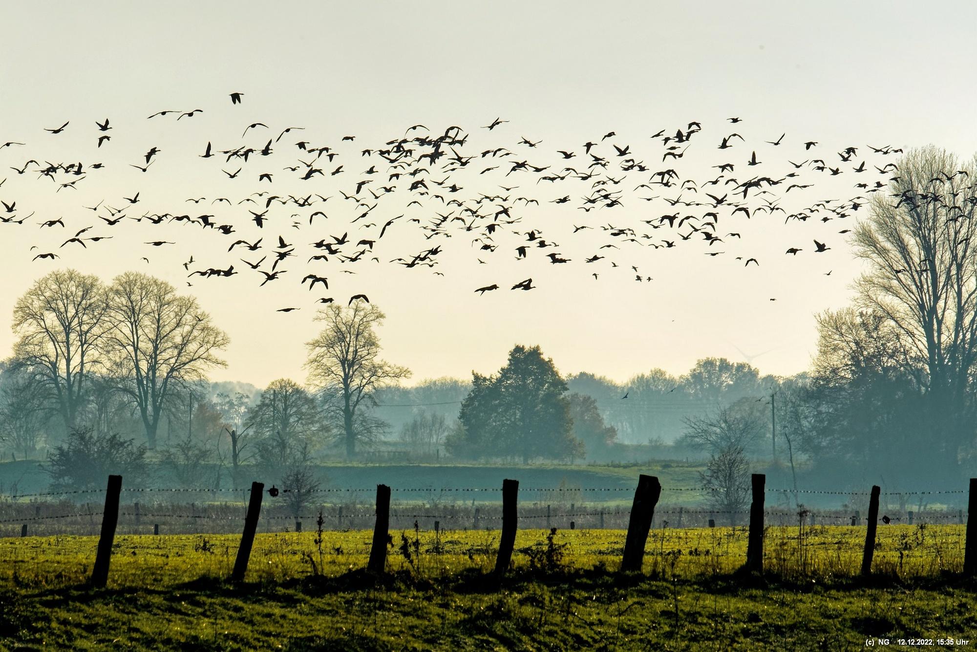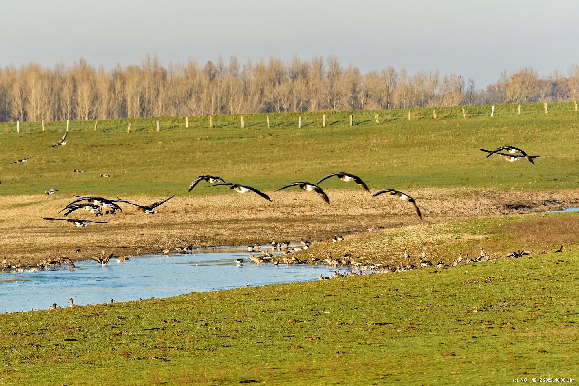 Dort, in einer der größten Auenlandschaften Deutschlands mit internationaler Bedeutung, überwintern jedes Jahr zigtausend asiatische Wildgänse.