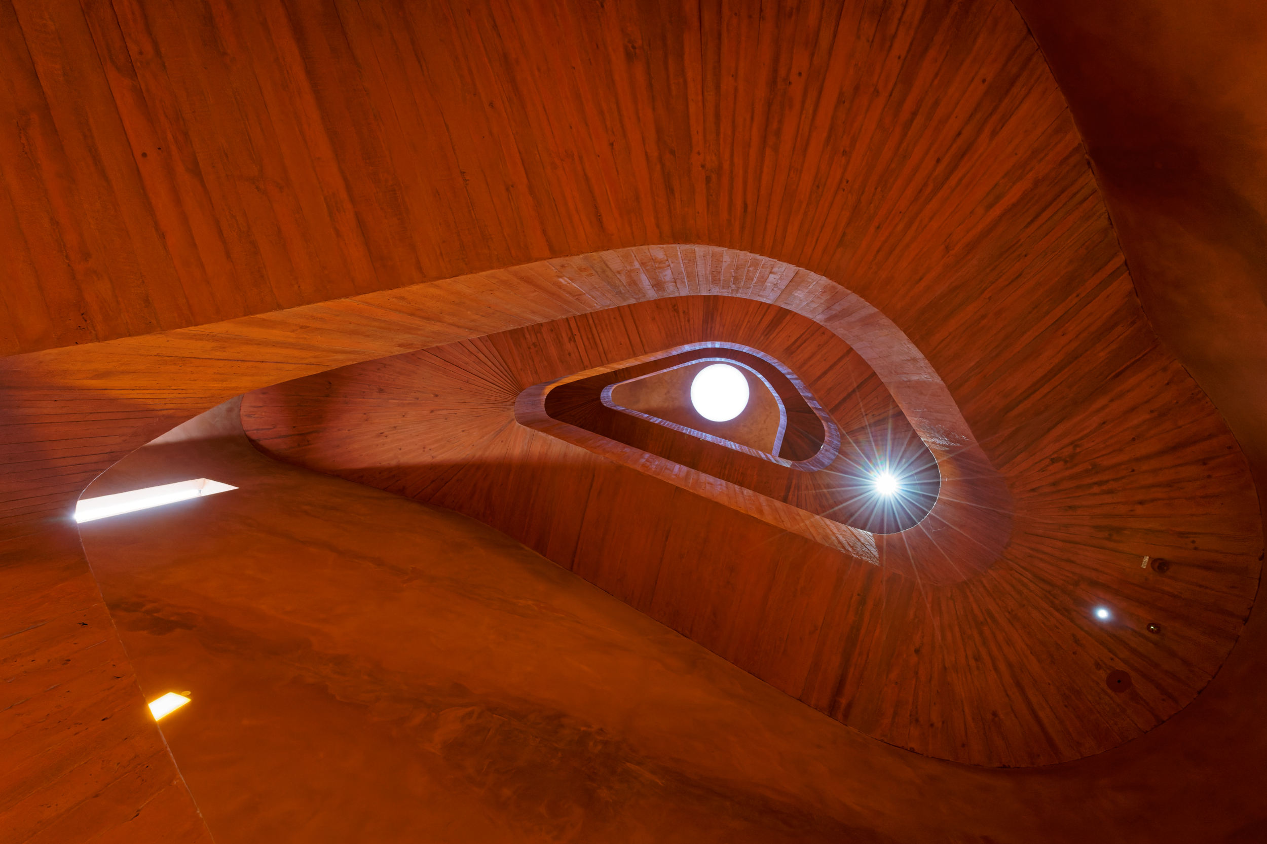 Es ist wieder gigantisch. In dem 120 m hohen, von innen völlig schwarzen Scheibengasbehälter hat man eine immersive Inszenierung installiert: